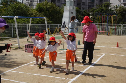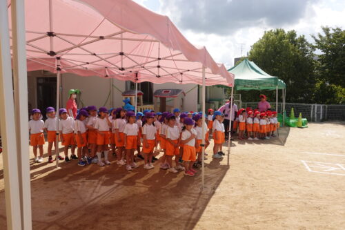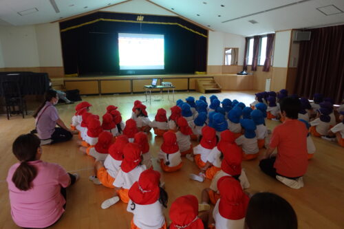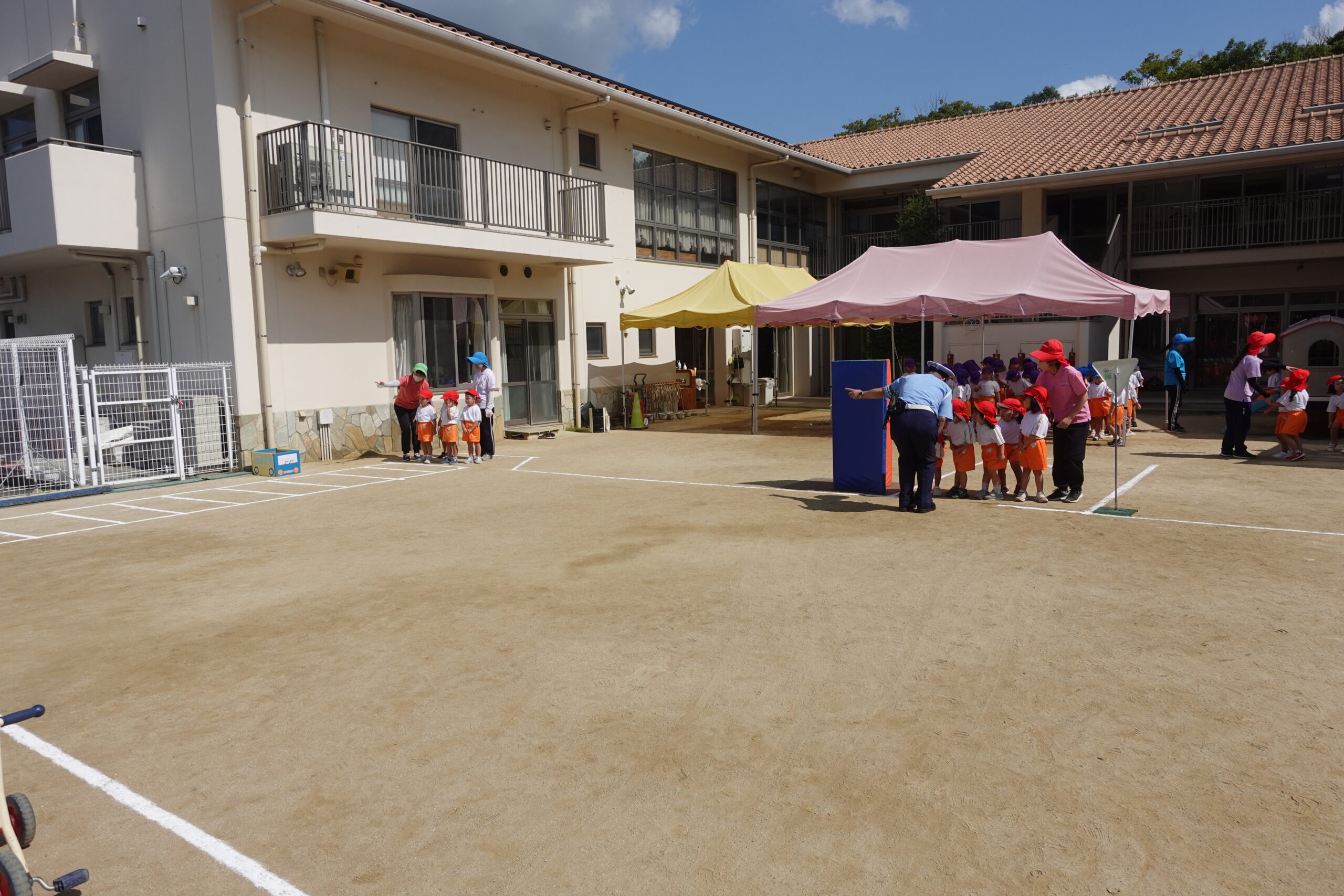 堺市の交通安全対策室の職員の方々や、南堺警察署の警察官がこども園に来てくださり、交通安全のお話をしてくださいました。