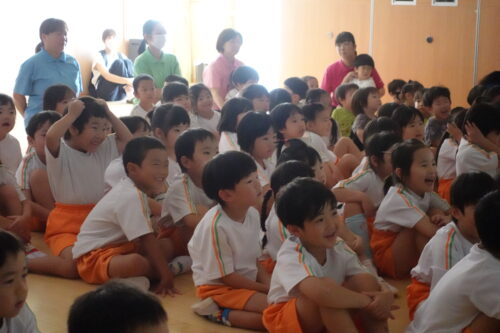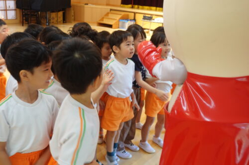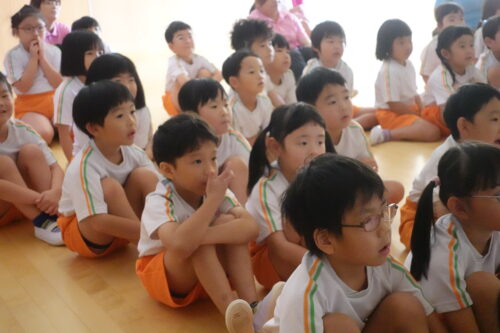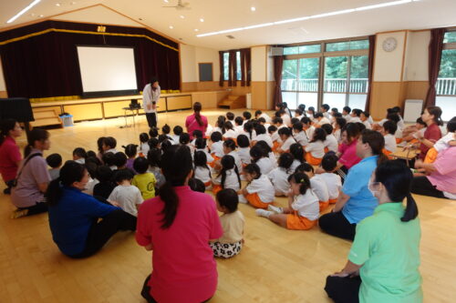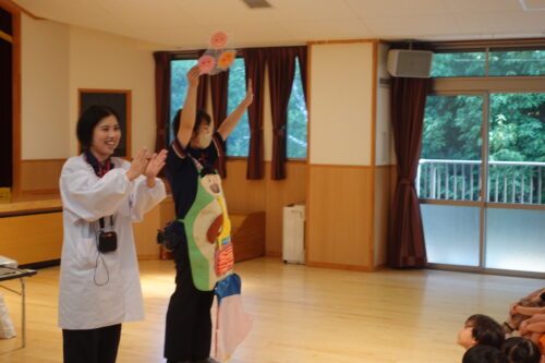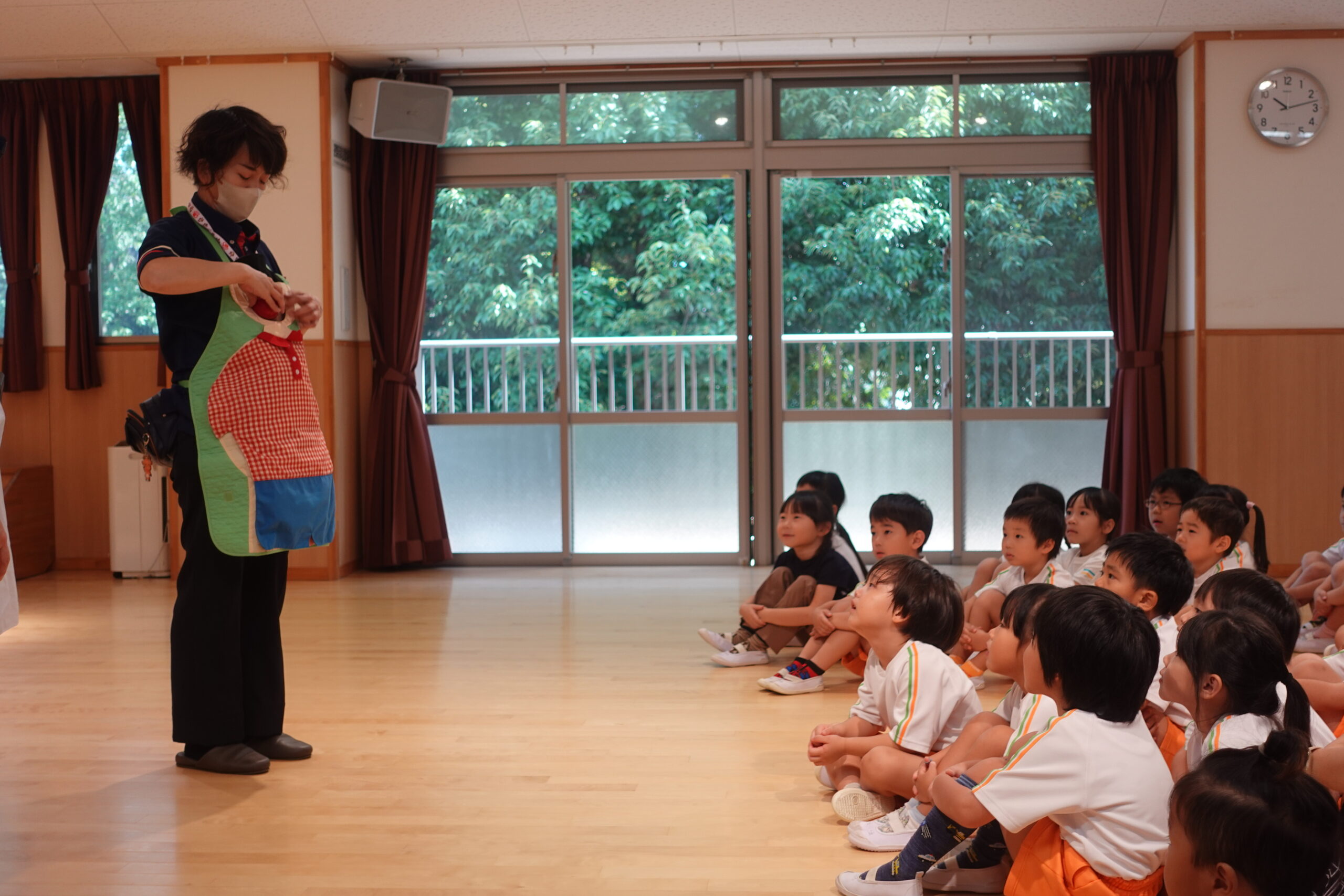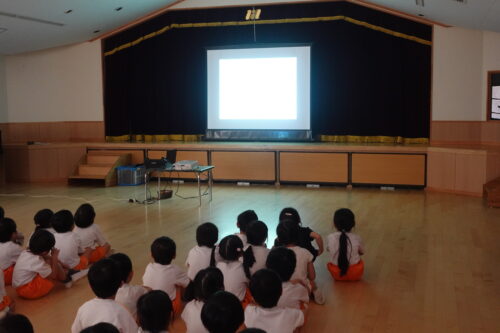 腸内菌がキャラクターになってでてくるお話のDVDをみました。楽しい内容に大盛り上がりの子どもたちでした。