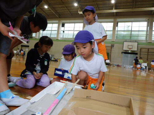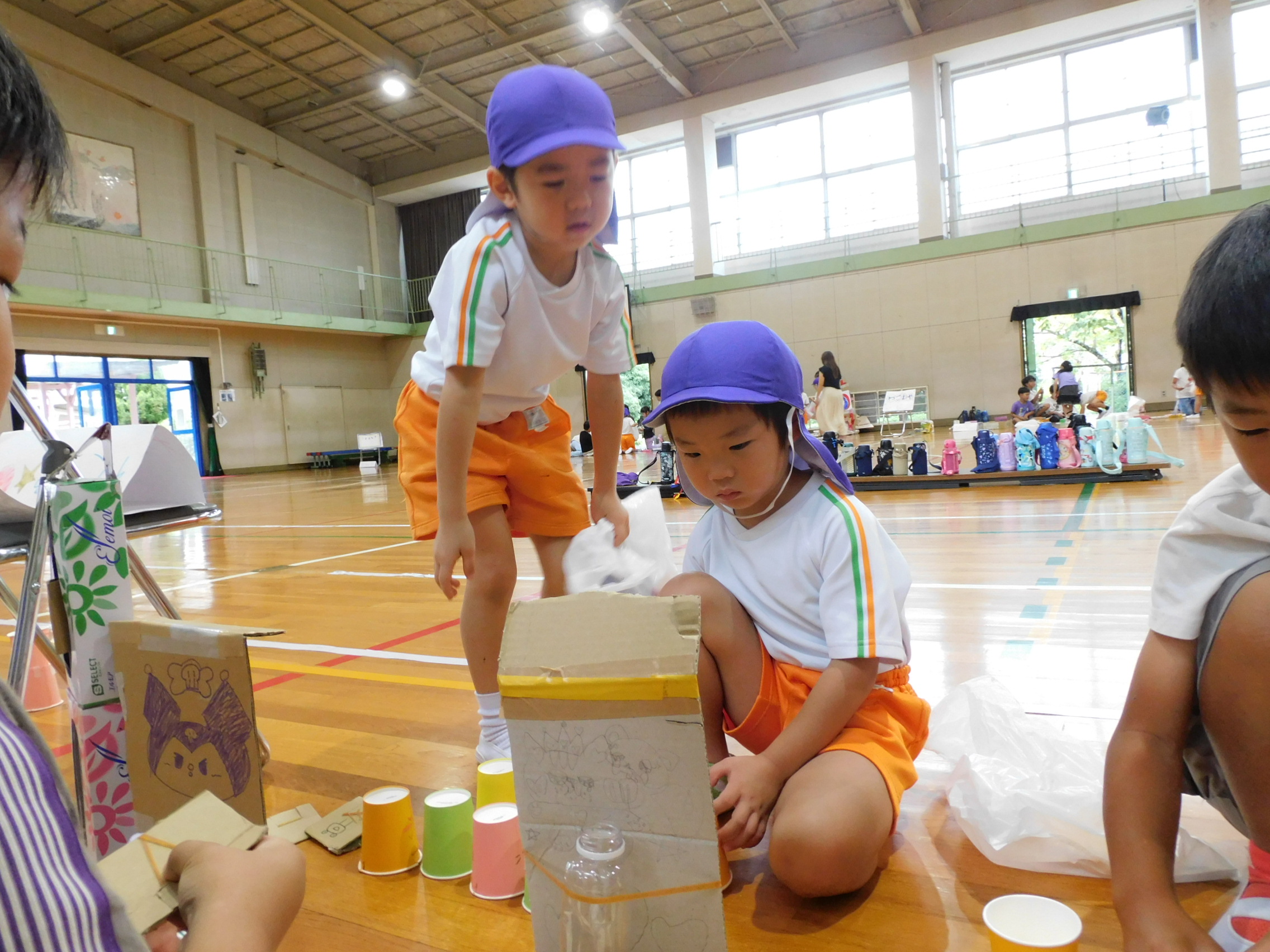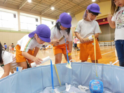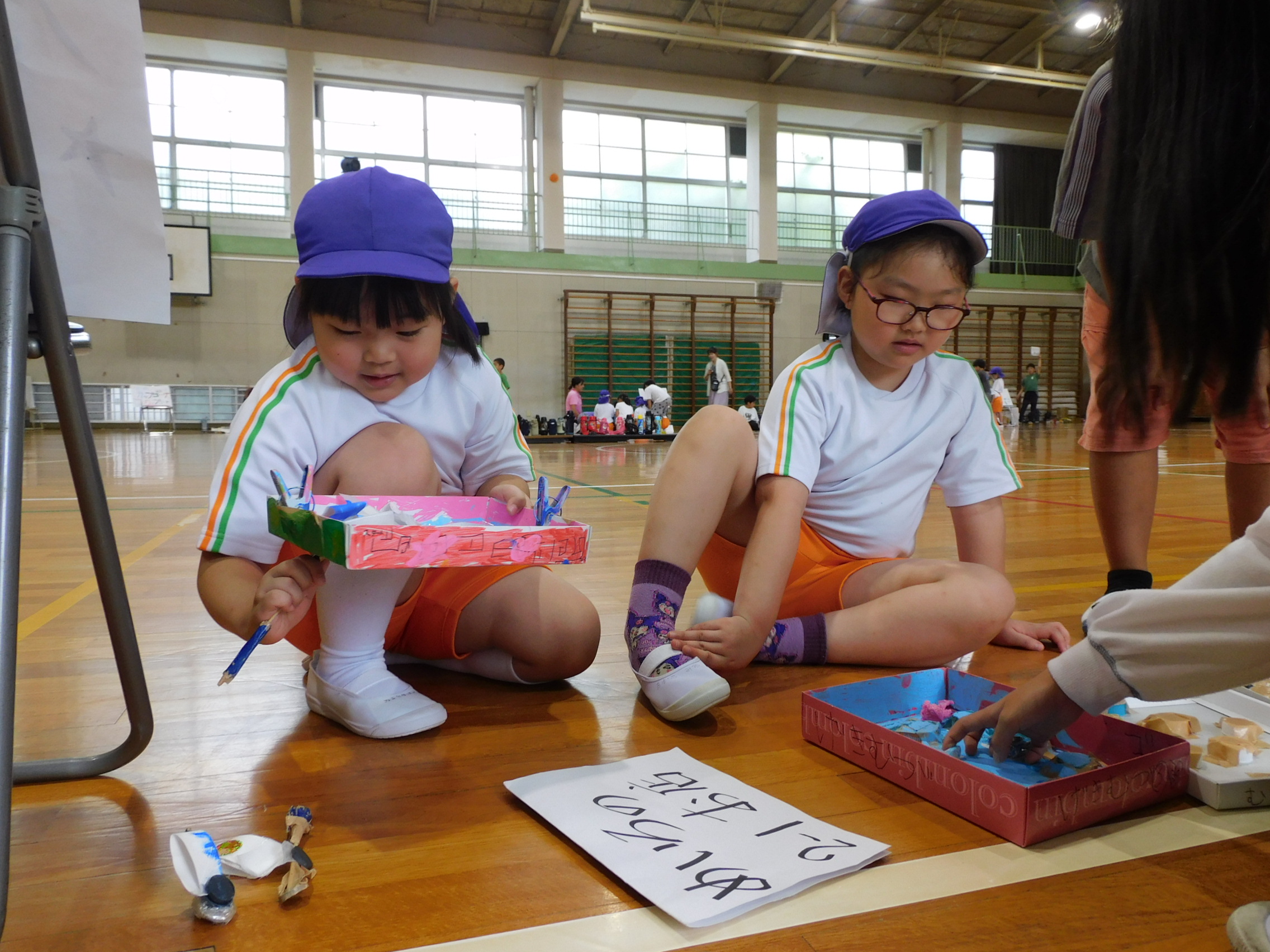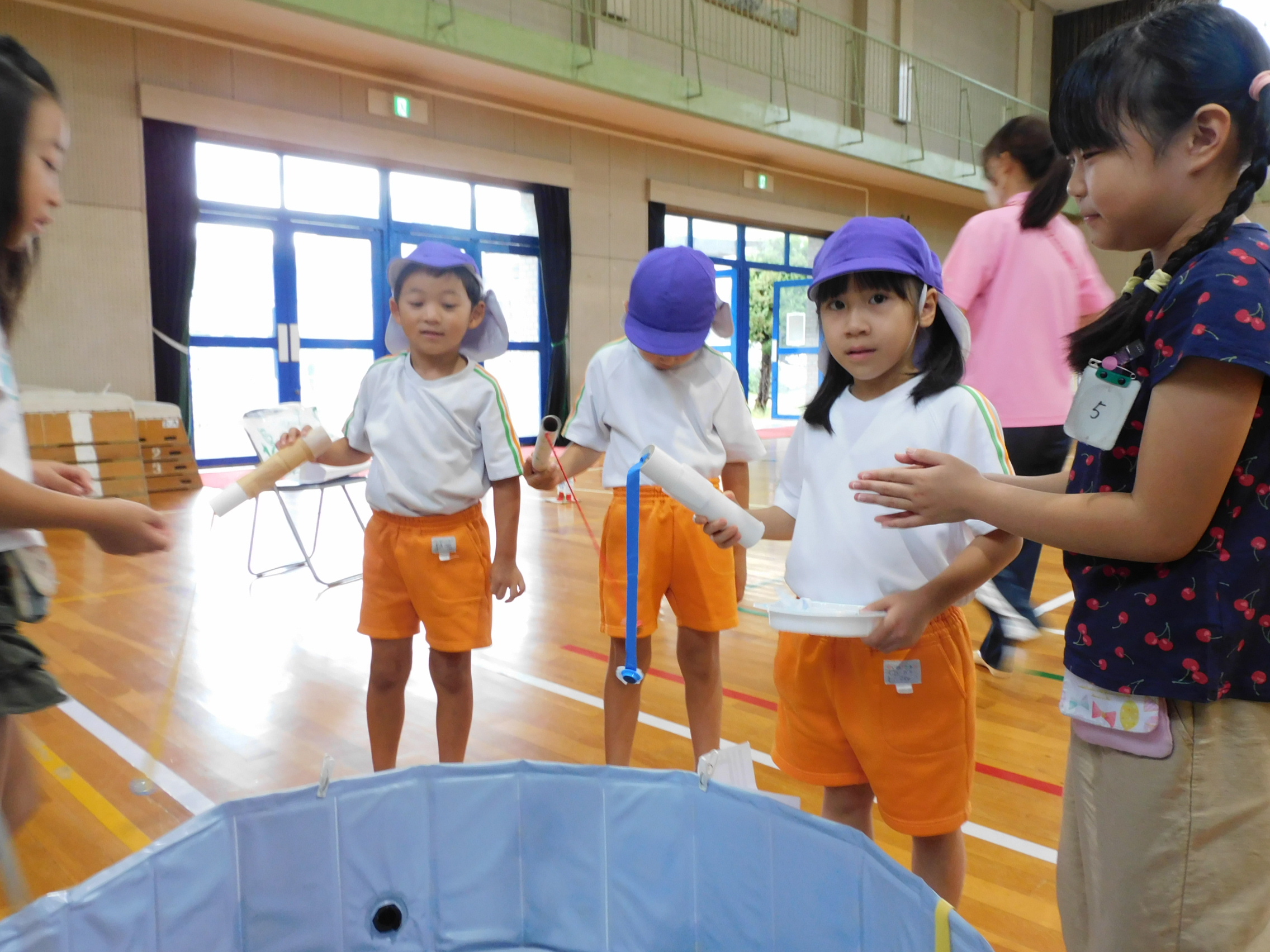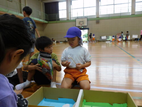 そして体育館に入ると2年生が考えて作った手作り遊びが、なんと14種類もあり、入った瞬間から興味津々で目を輝かせていていました。
