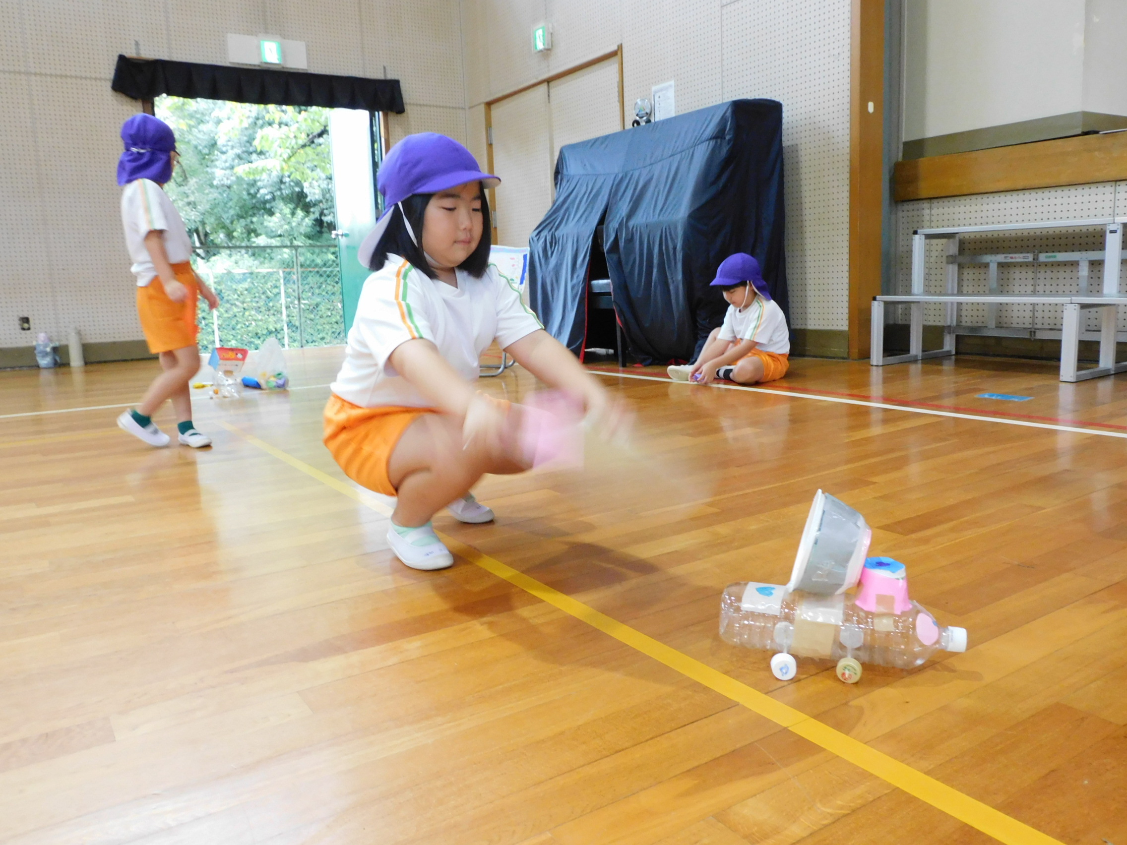 『的あて』『めいろ』『風で動く車』『ごむのおもちゃ』など楽しいゲームが盛りだくさんでした。ゲームをクリアすると・・・手作りの景品のプレゼントをいただきました!