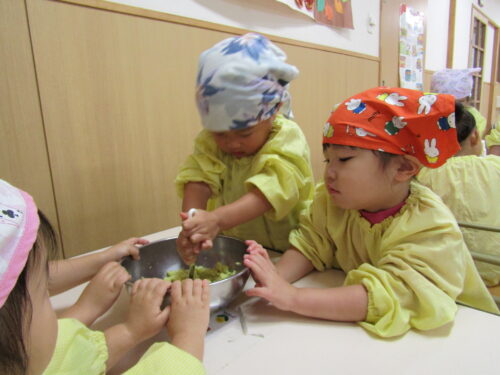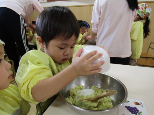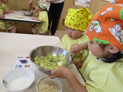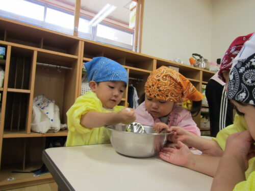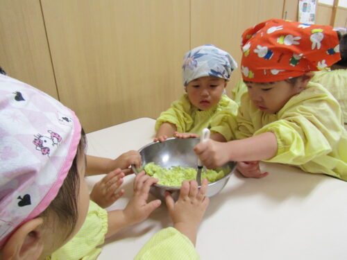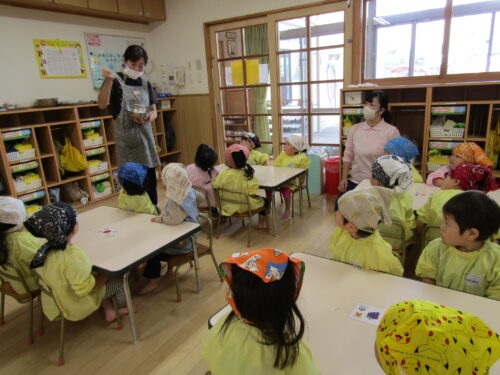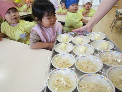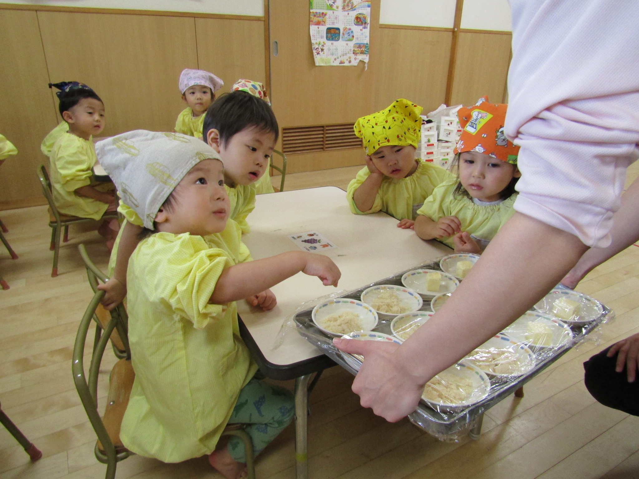 出来上がるまで、待ち遠しくて、お友だちとお話をしてワクワクが止まらない様子でした。
