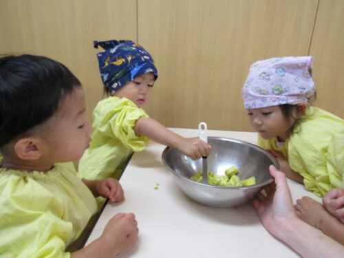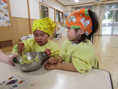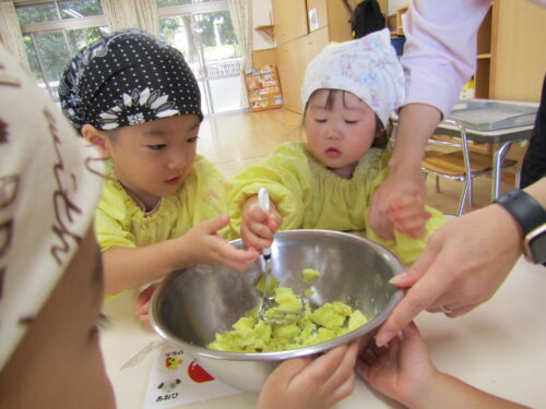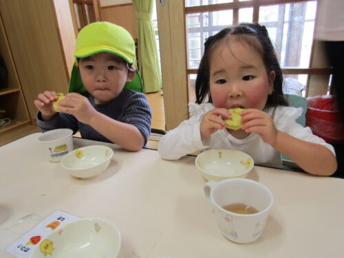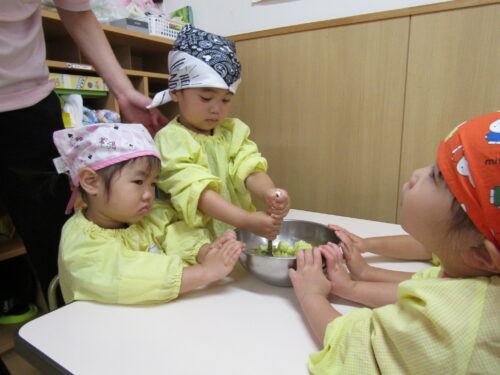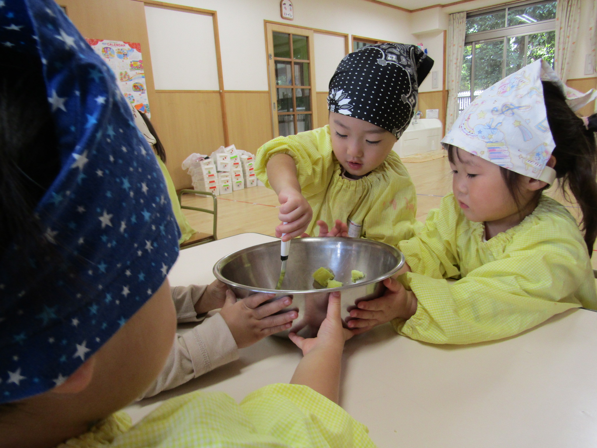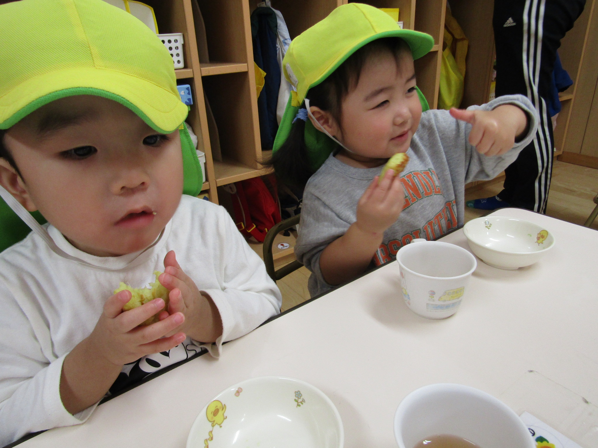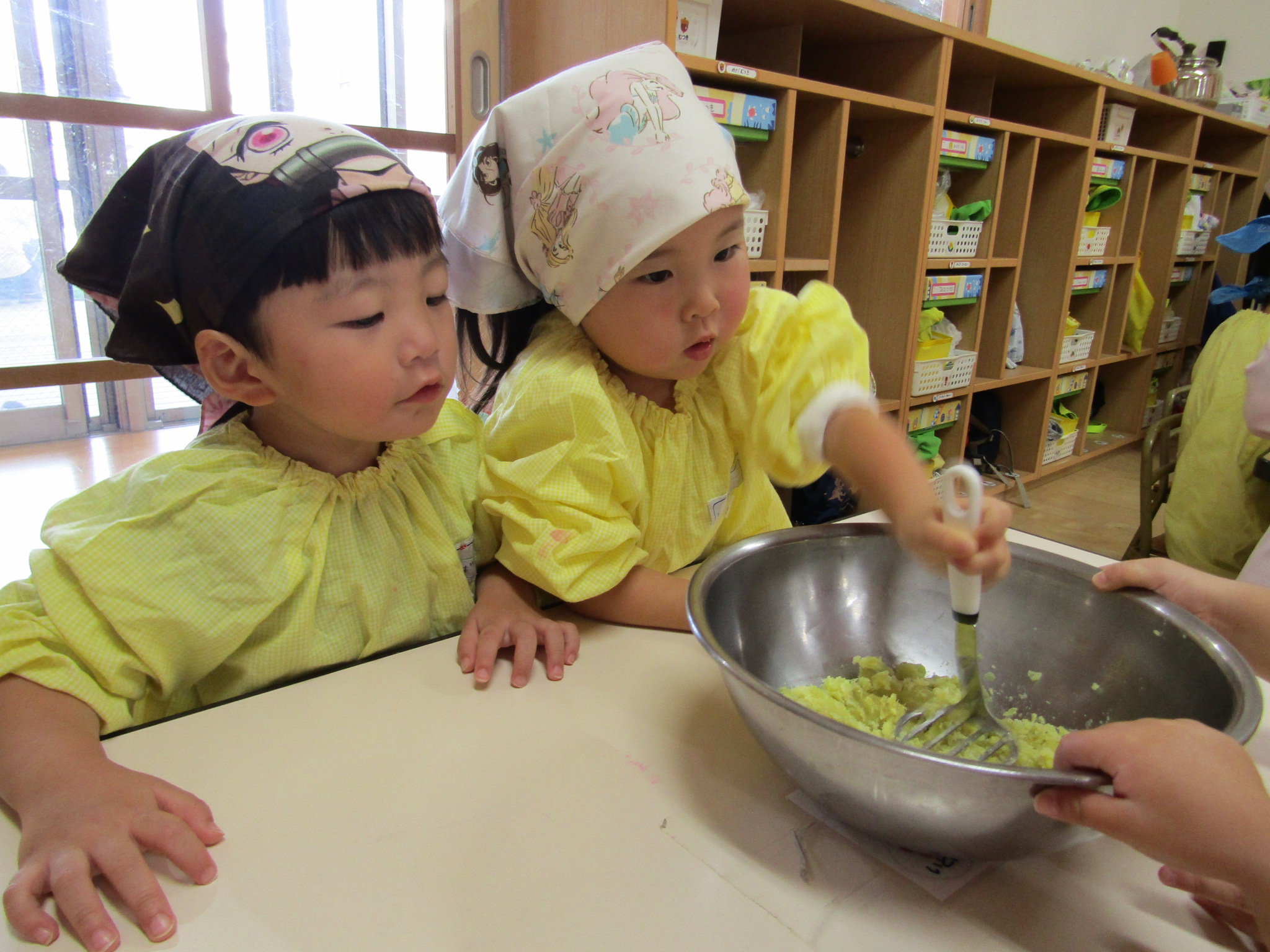 お芋が潰れていく様子に「小さくなった!!」と大盛り上がりです。