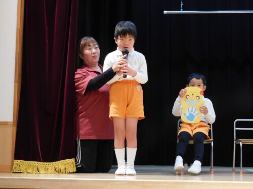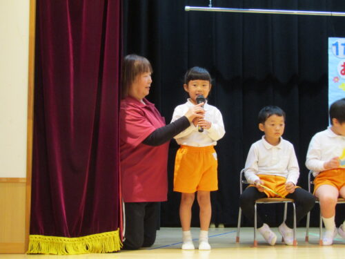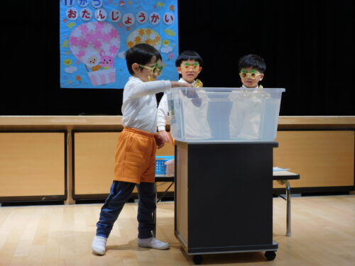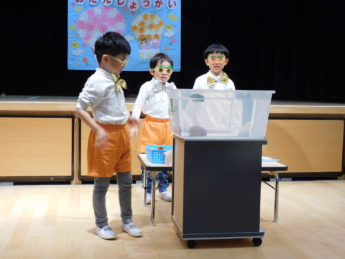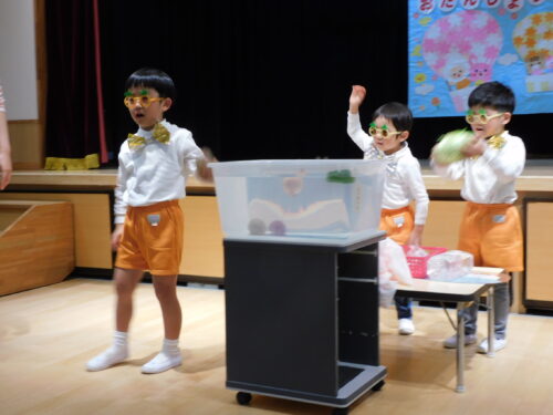 あやめ組のお友達と保育教諭による催しは『実験クイズ』