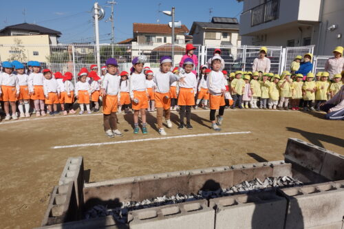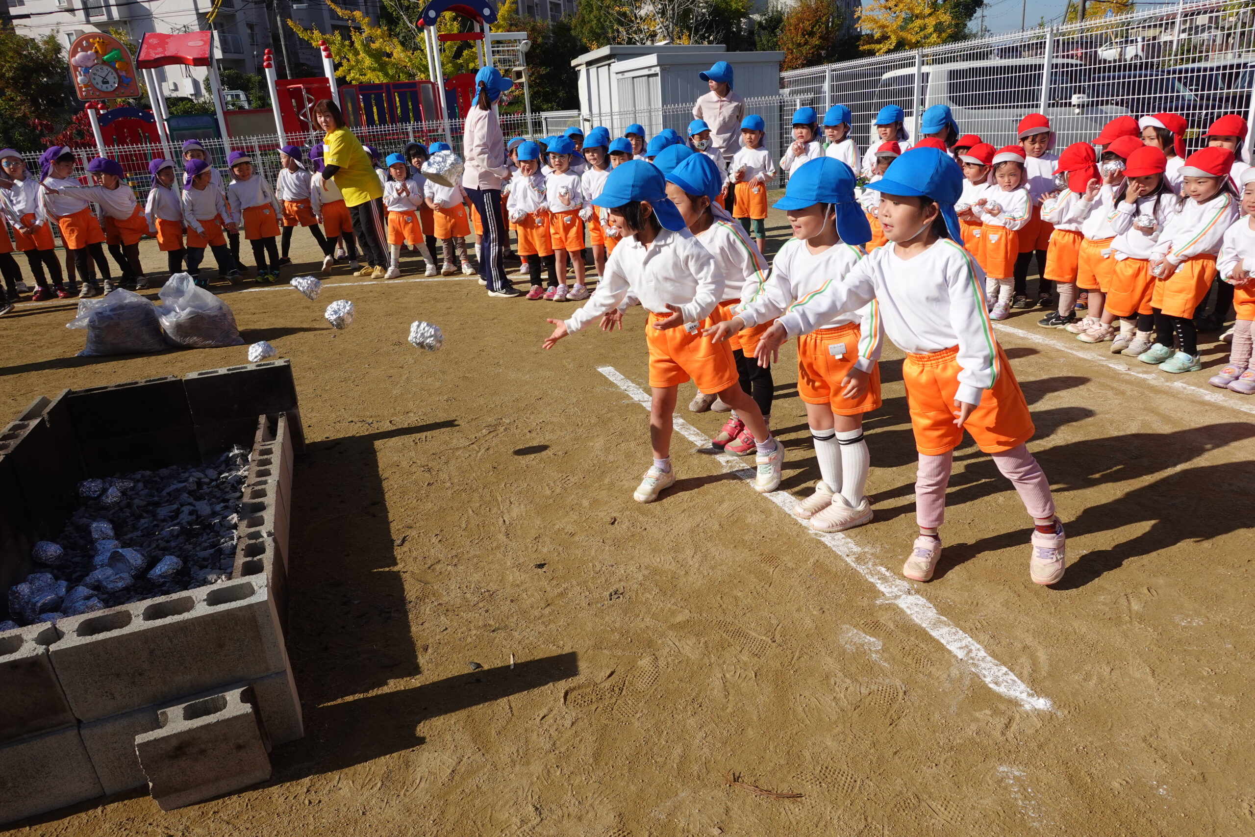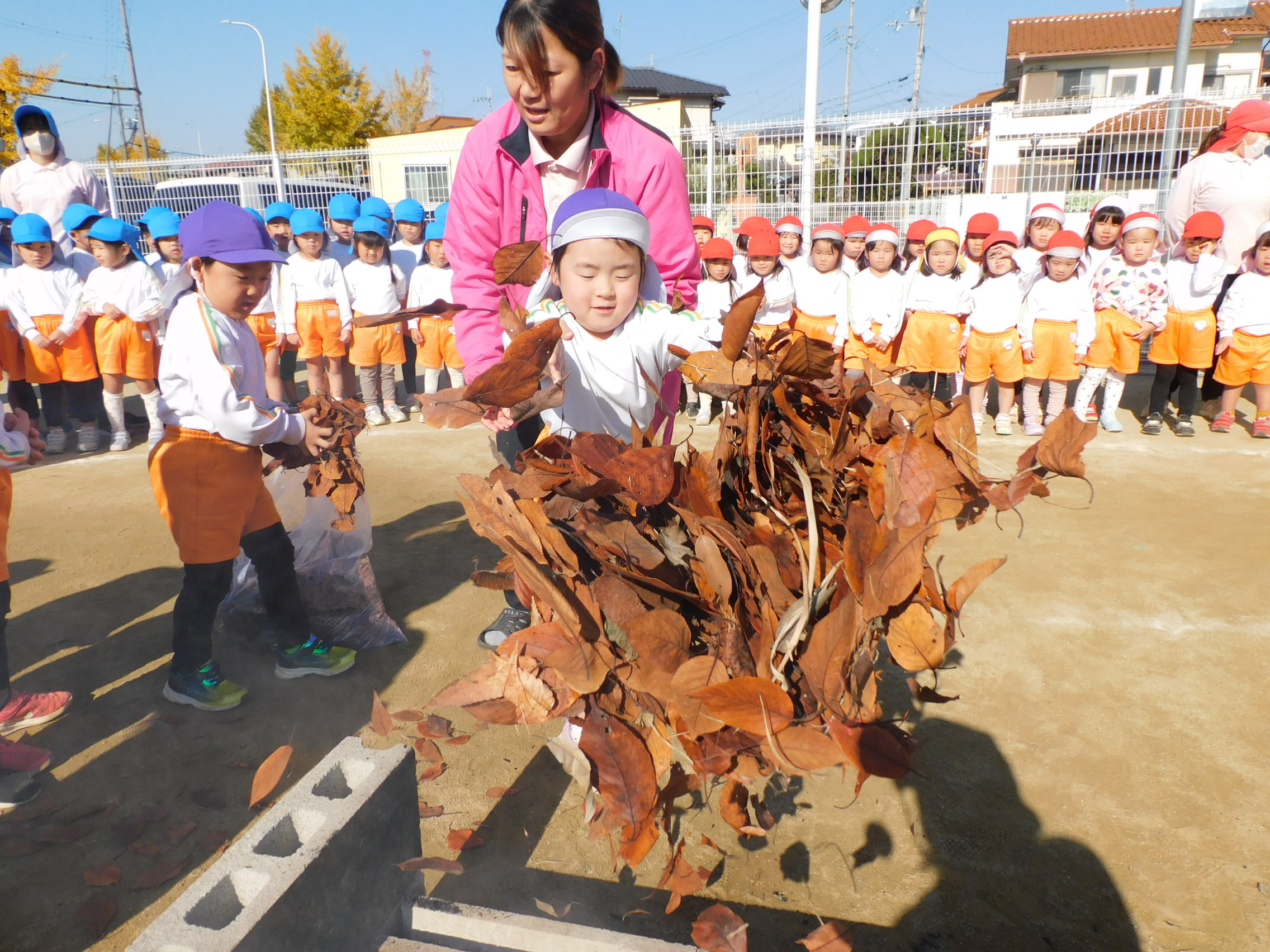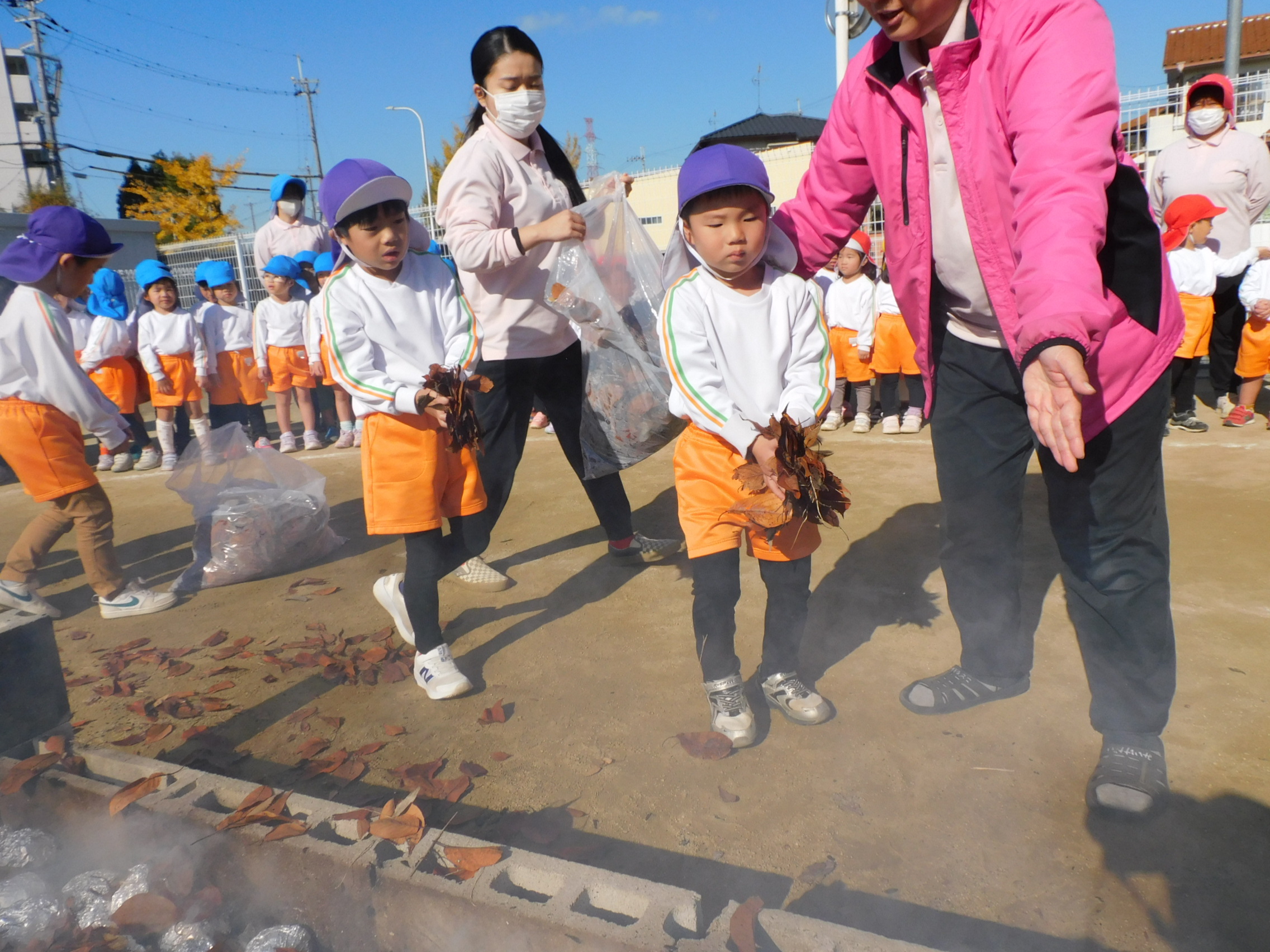 あやめ組さんが拾ってきてくれた落ち葉を焚き火にたくさん入れました♪
