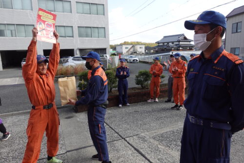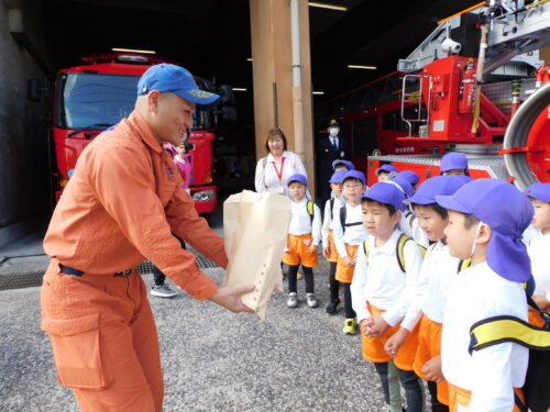 消防士さんも大喜び!そして、「来てくれてありがとう」と色鉛筆のプレゼントをもらいました!