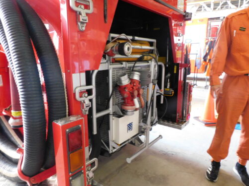 はじめに消防署に行き、2グループに分かれて、消防車内を見せていただきました。