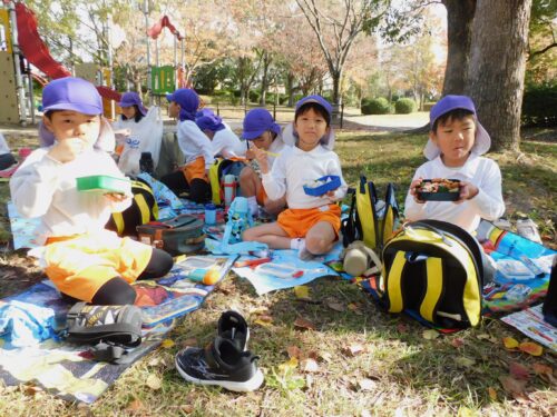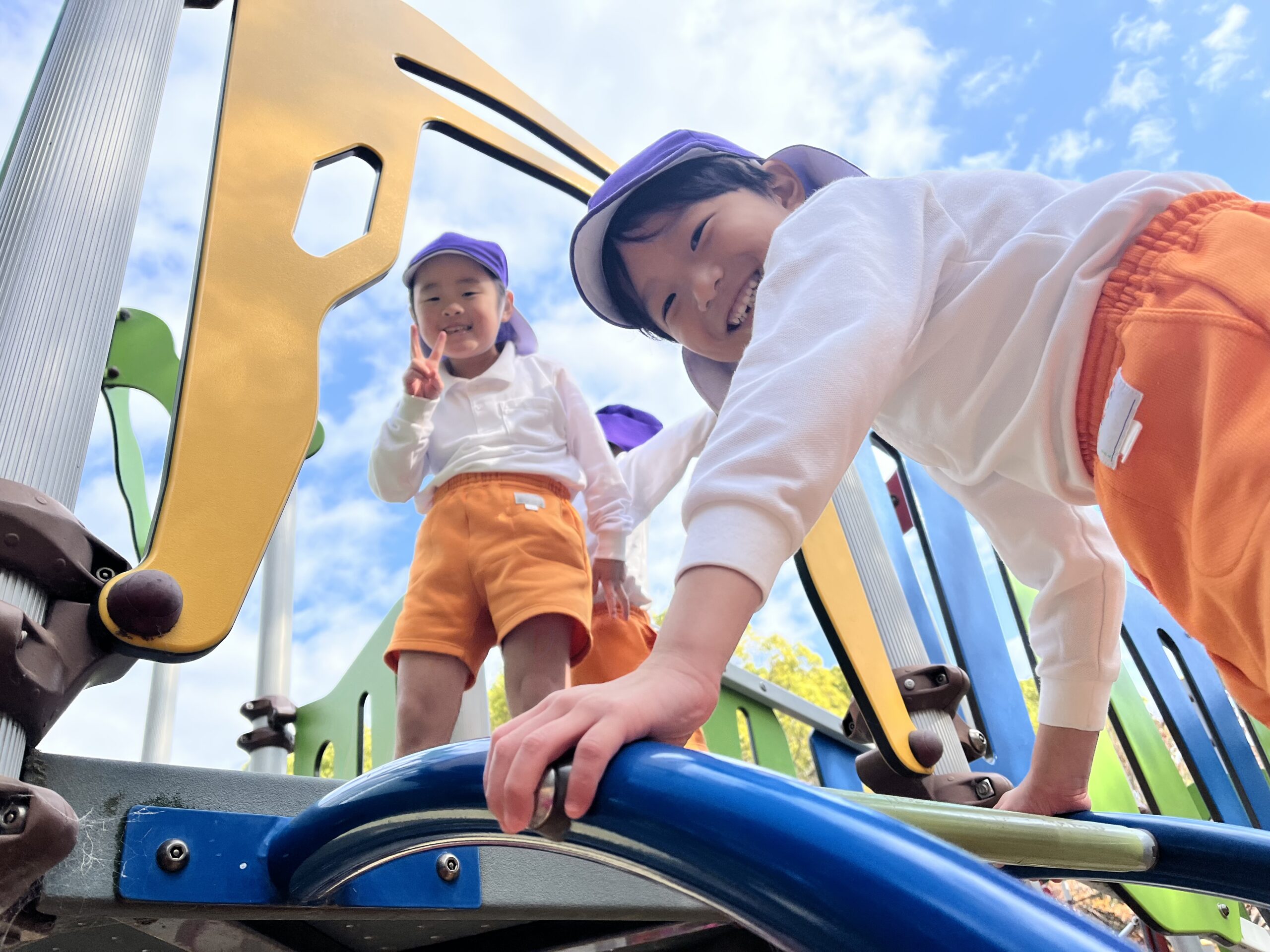 食べ終わった後は待ちに待った自由時間!みんなで公園内の大型遊具で遊びました。