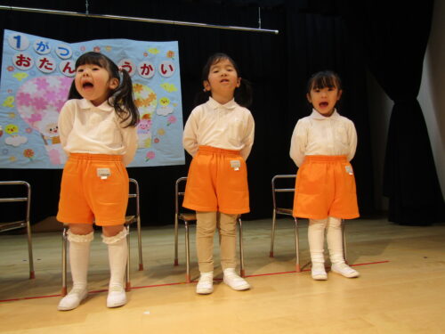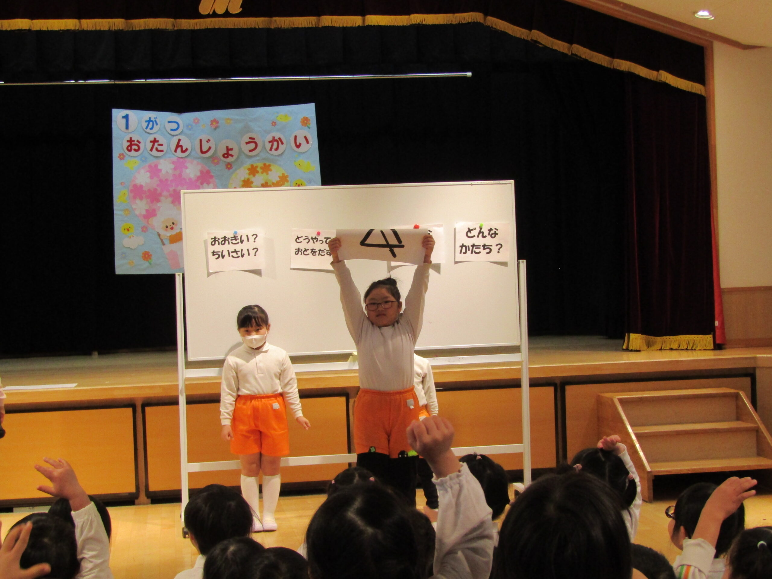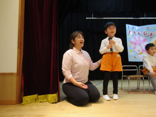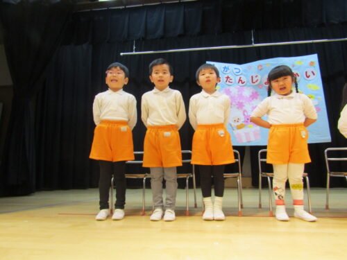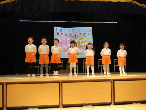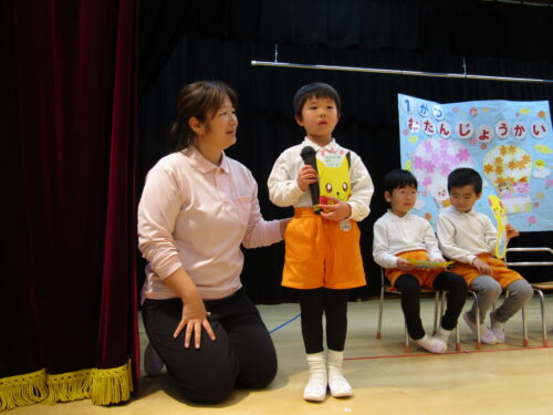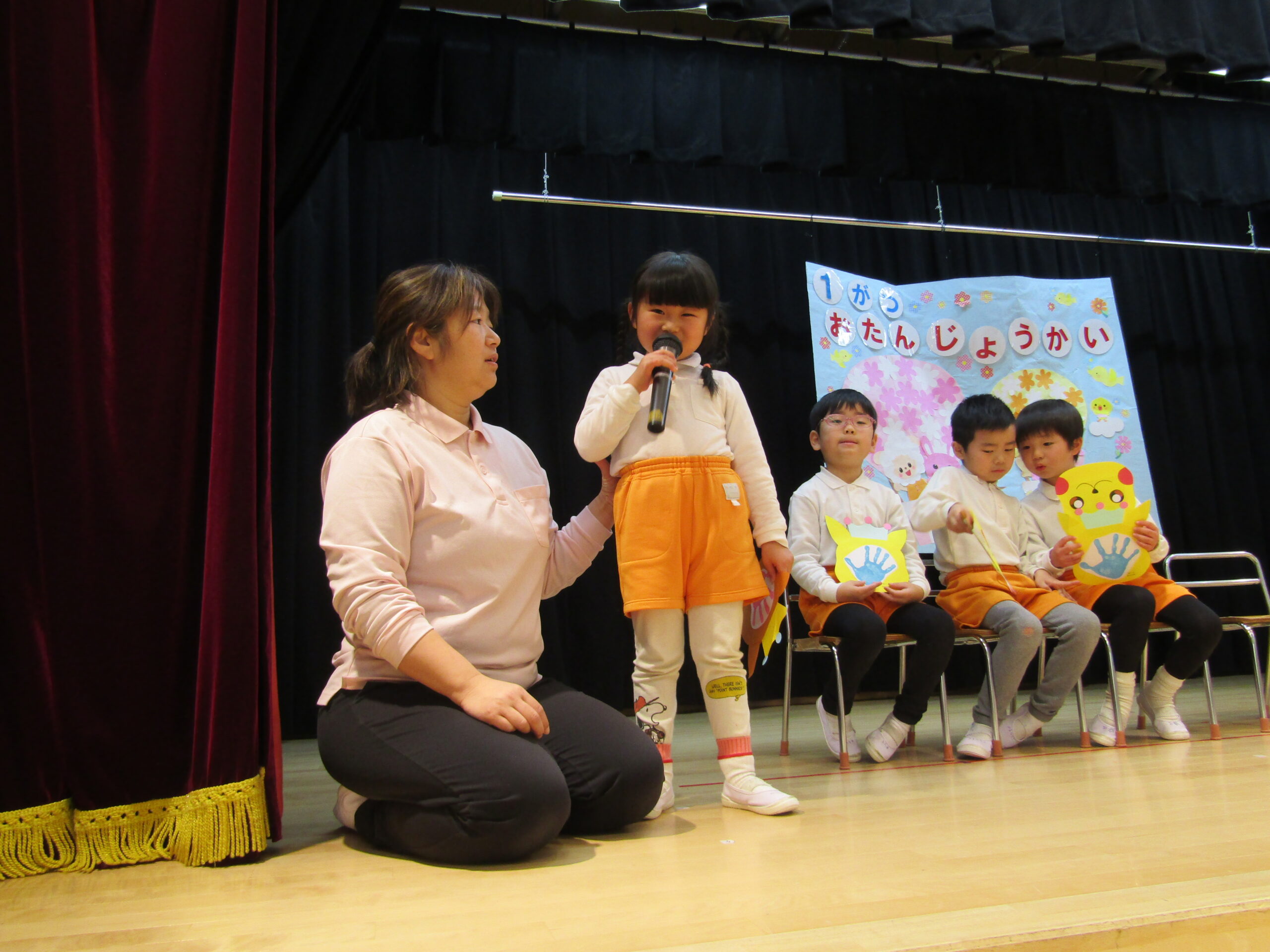 お誕生児の紹介では、年長さん(あやめぐみ)は大きな声で堂々と発表し