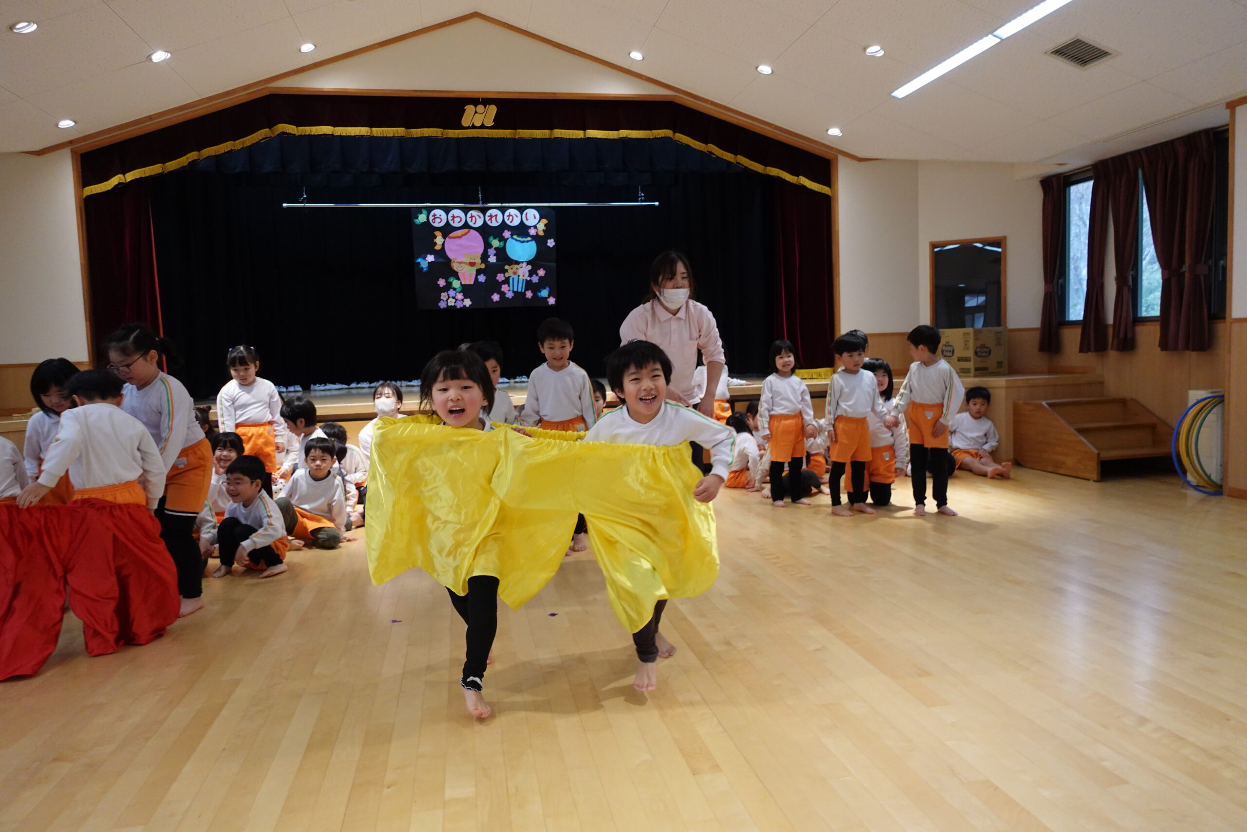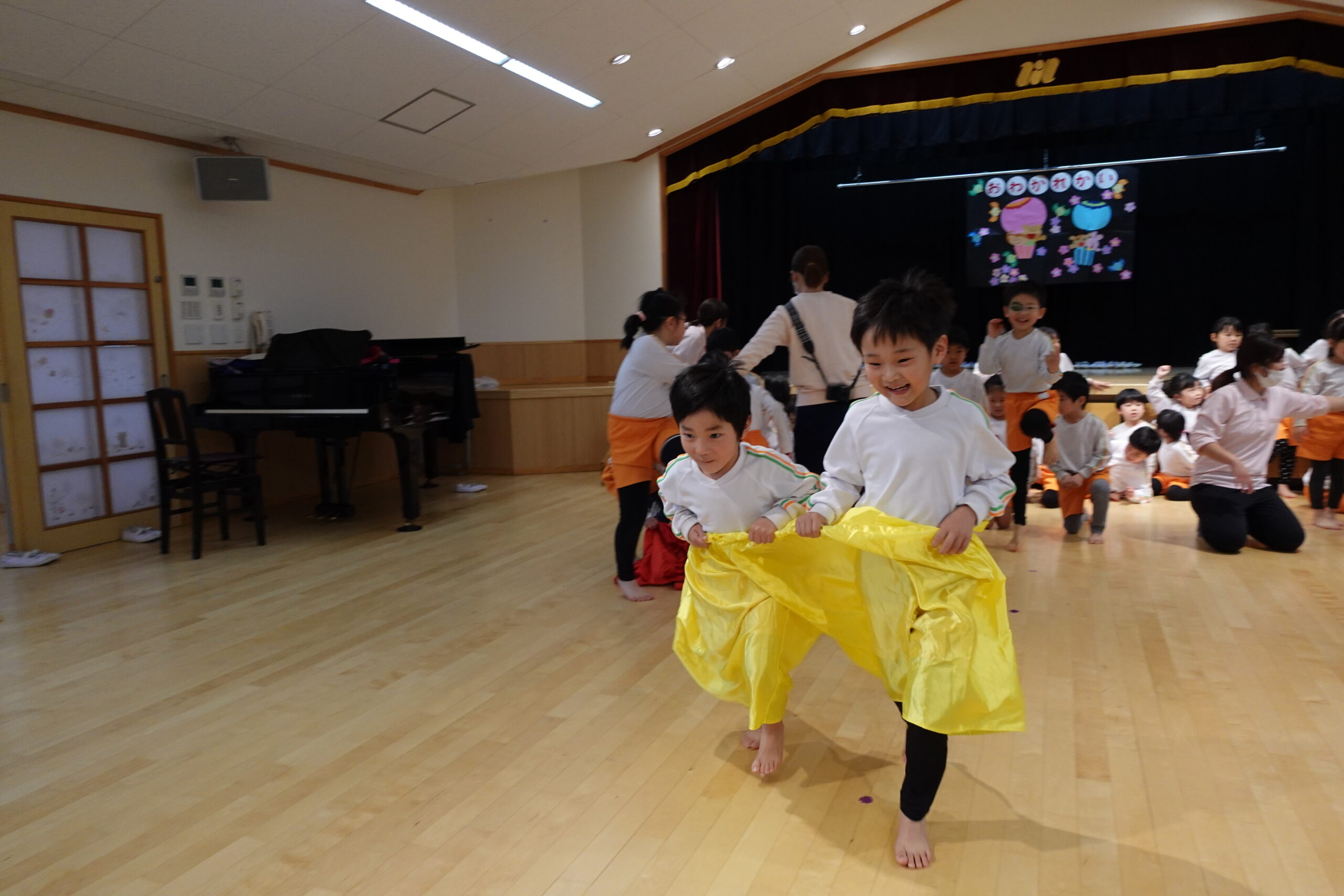 大きなパンツを2人で履いて競争!みんな1位になりたくて大急ぎ、白熱な戦いでした。