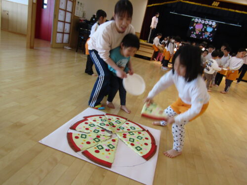 2歳児ほしぐみ「ピザ運びゲーム」