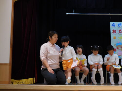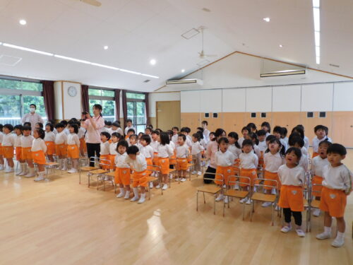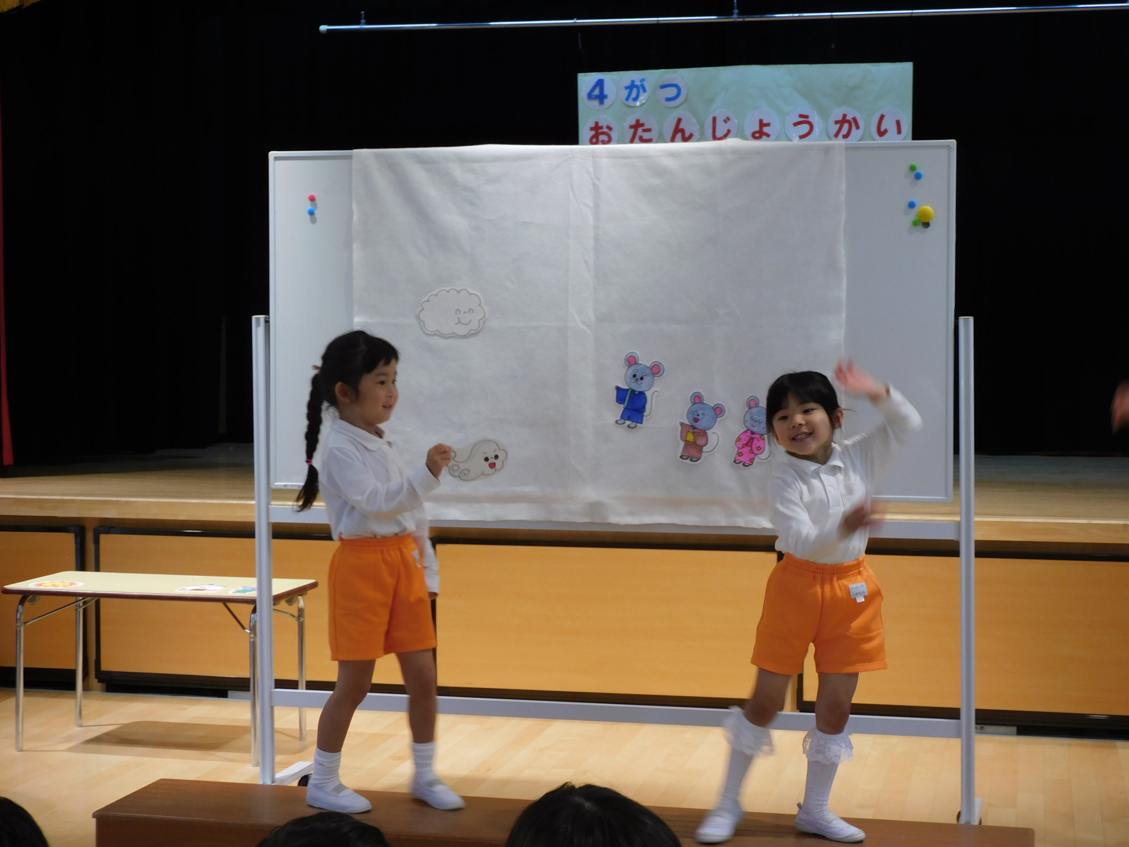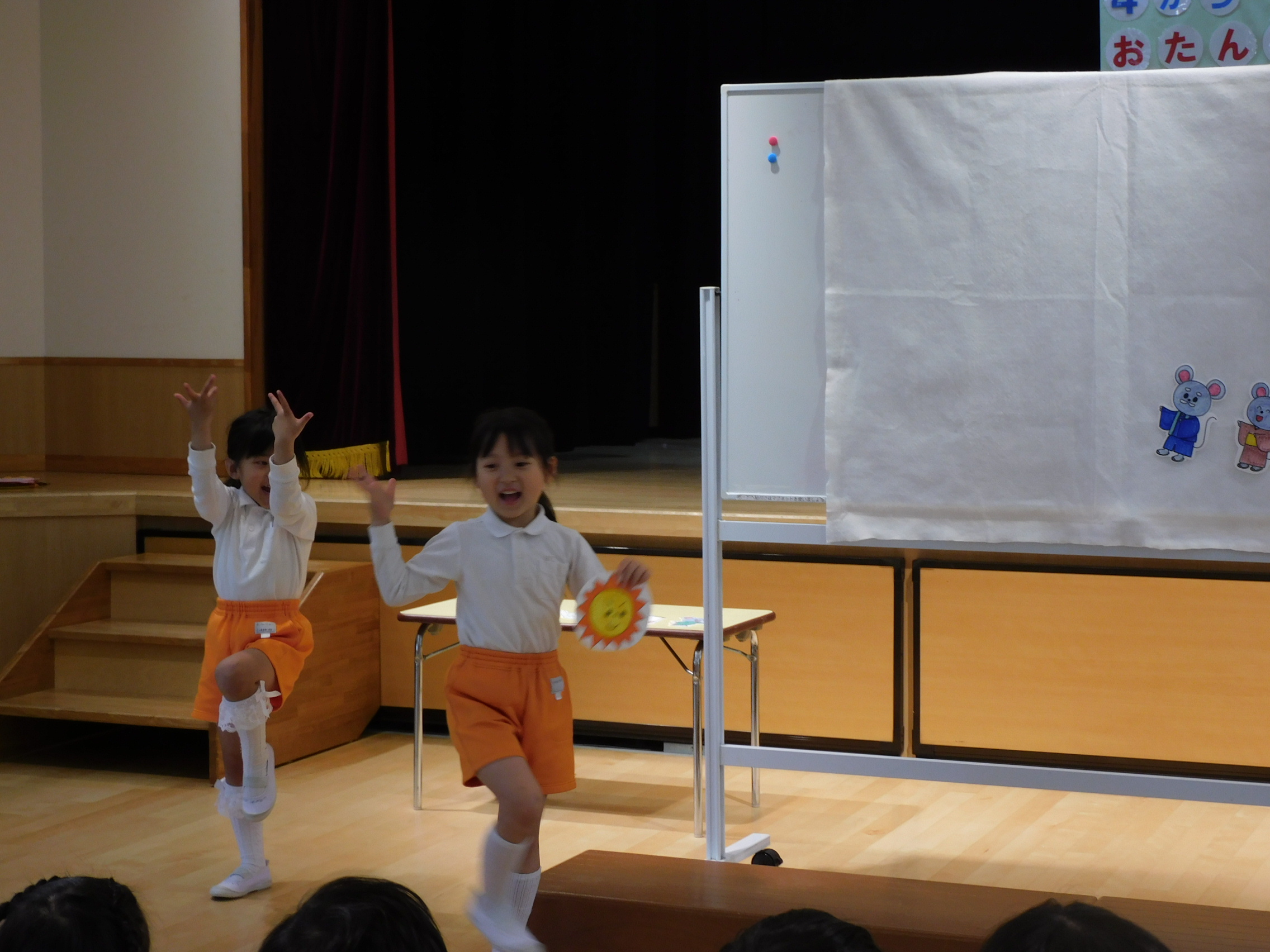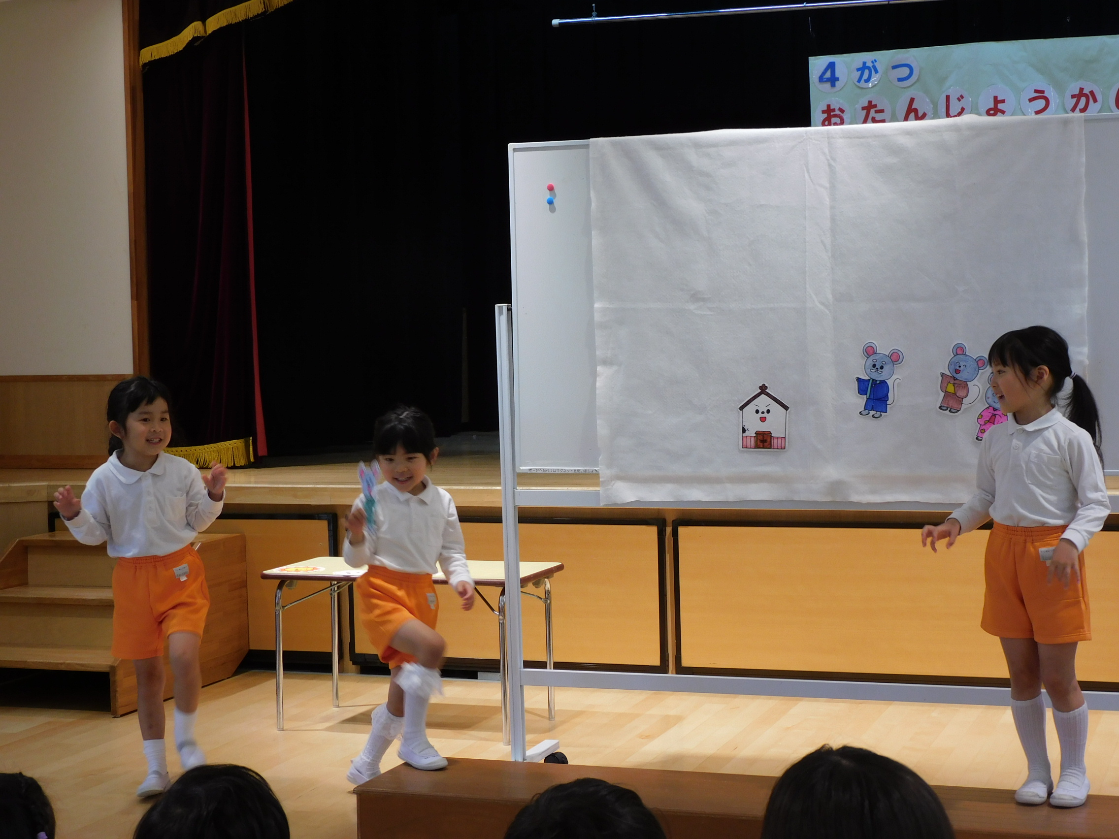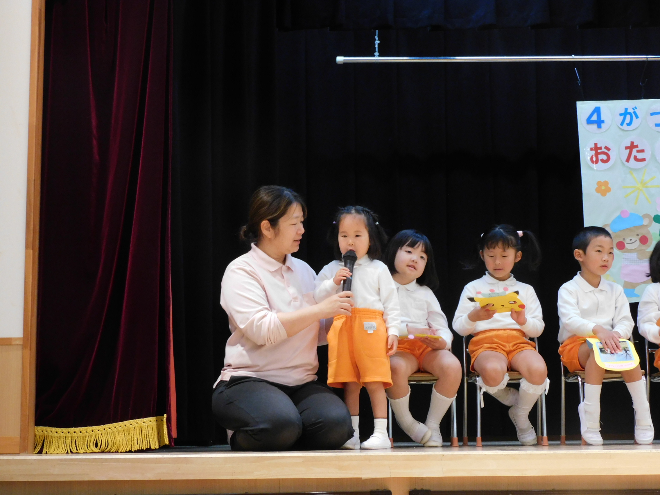 進級して初めてのお誕生会ということもあり、期待した表情で参加するこどもたちです。