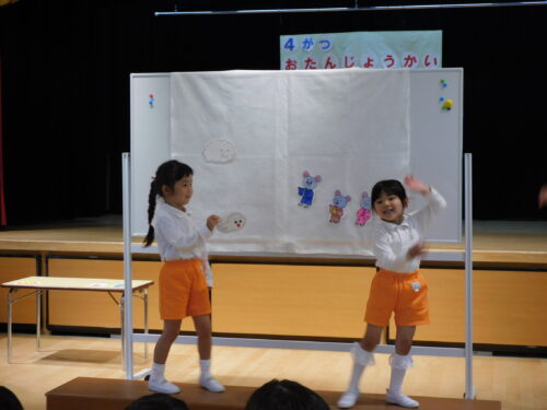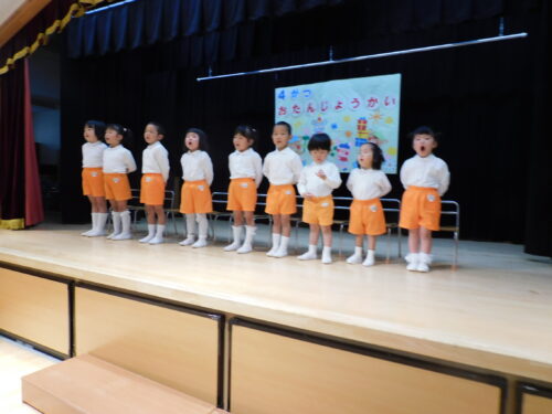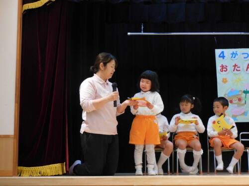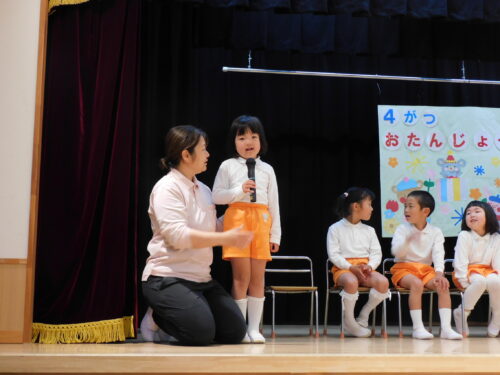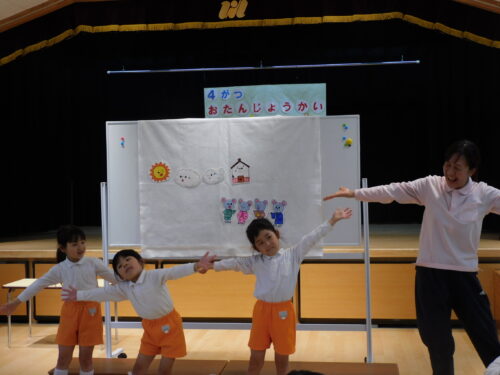 4月のお誕生会では9人のお友だちを皆でお祝いをしました。