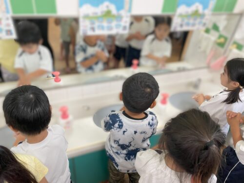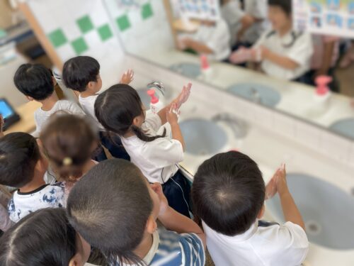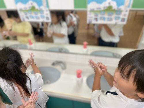 教わって2カ月が経ちました。正しい方法で丁寧に洗おうとする習慣が身についてきている子どもたちです👏