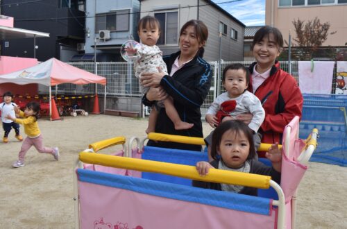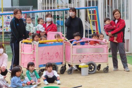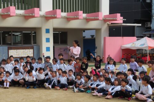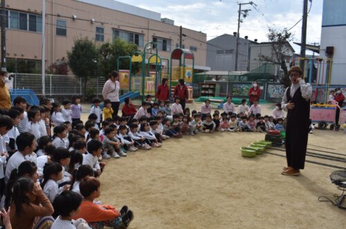 園庭に集まった子どもたち。今からどんなショーが始まるのだろう⁉と