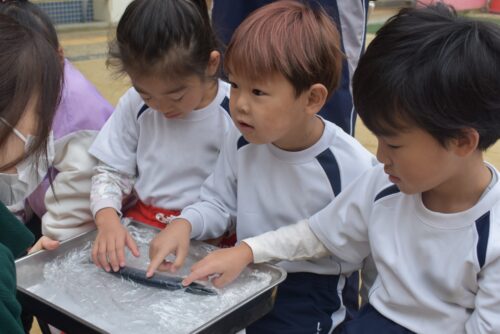 小さいクラスのお友達もおそるおそる触っていました。