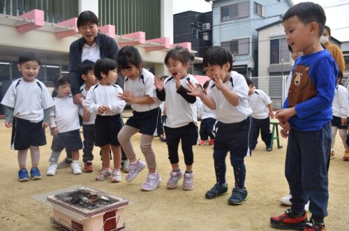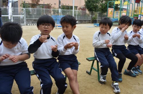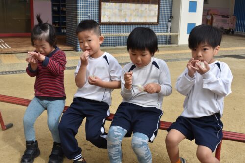 次は園庭でお芋を焼いて食べる予定です。
