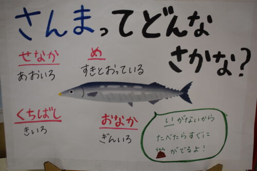 まず栄養士さんから、さんまについてのお話やクイズがありました。