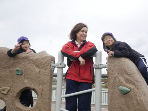 広場でおいかけっこをしたり、鬼ごっこが始まりました!