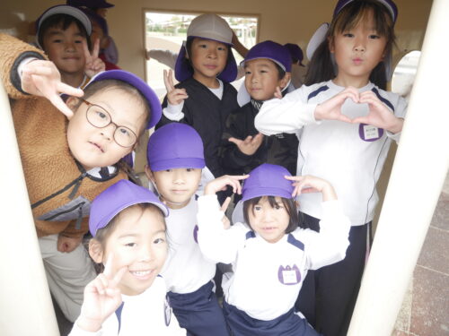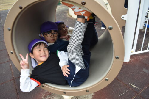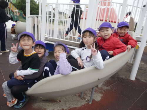 すべり台やおうちの中ではみんなで集まってハイポーズ☆
