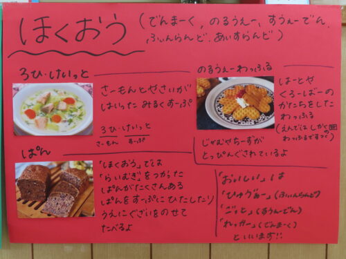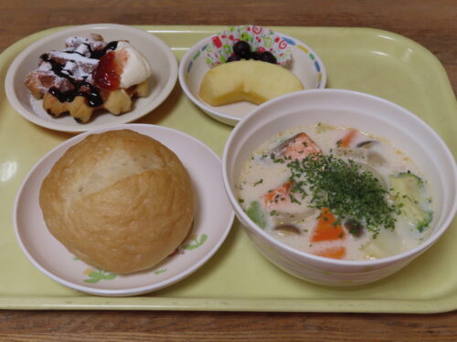 メニューは、ルヴァンブール、ロヒ・ケイット、いちご・ブルーベリー、おやつはノルウェーワッフルです。
