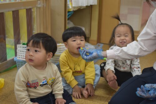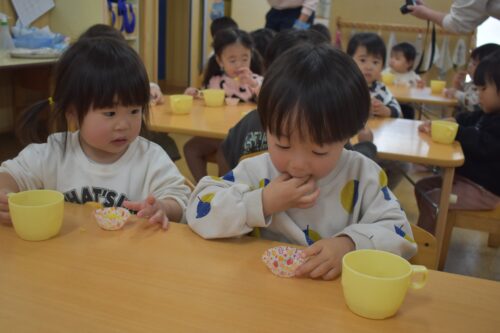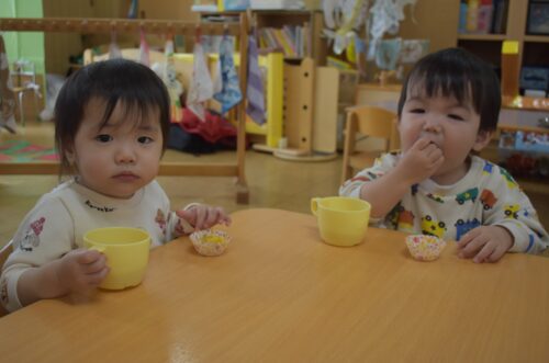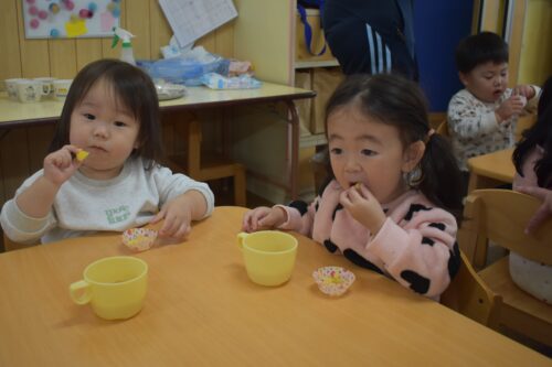 さくらんぼ組・いちご組の子どもたちはお部屋で味わいました。