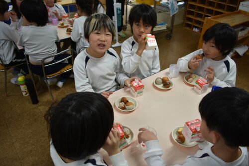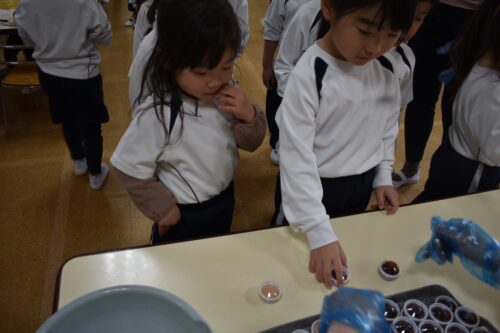 ぶどう組さんだけに調理員さんが、チョコレートをコーティングしてくれました。