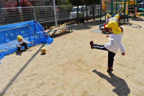 ボールを用意すると、サッカーのPK対決が始まりました!