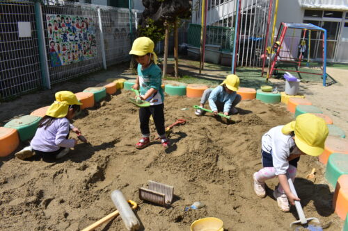 好きな遊びを見つけて、友達と一緒に遊ぶ子どもたち。